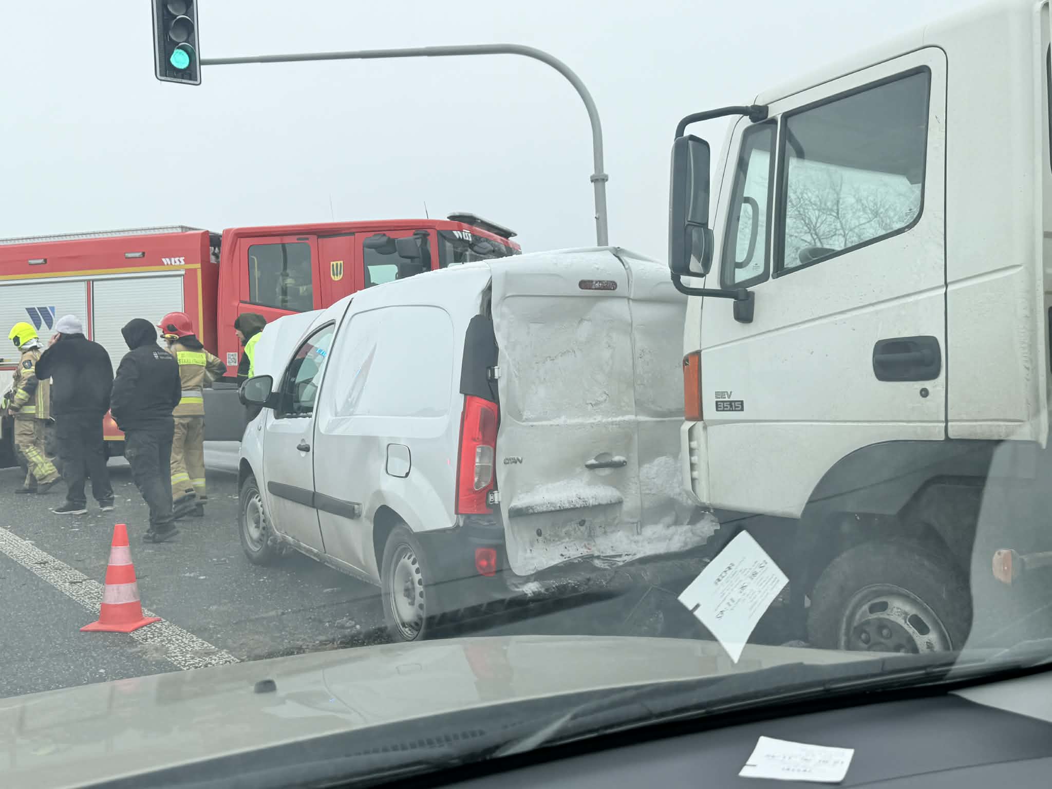 14 stycznia 2026 roku (środa) przed południem na trasie S8 (na węźle Wolica), w powiecie pruszkowskim doszło do zderzenia dwóch pojazdów: ciężarowego Nissana i dostawczego Mercedesa.