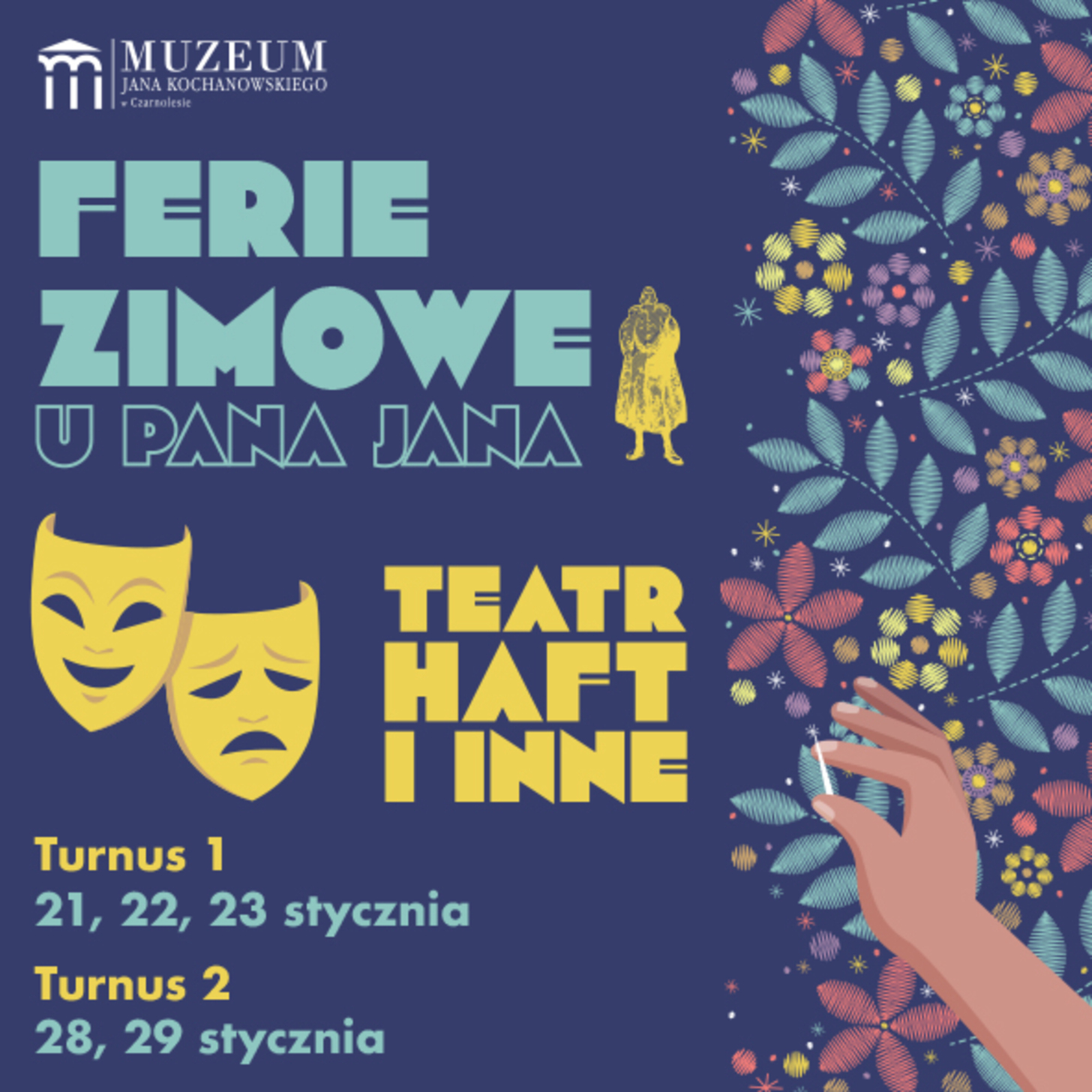 Muzeum Jana Kochanowskiego w Czarnolesie zaprasza dzieci w wieku szkolnym na warsztaty plastyczne, kreatywne warsztaty z haftowania, warsztaty teatralne, oraz logiczno-konstrukcyjne gry i zabawy. Ferie u Pana Jana to nie tylko kreatywna zabawa, ale także okazja do poznania historii i miejsca związanego z życiem i twórczością Jan Kochanowski – w wyjątkowej atmosferze zabytkowego dworu i czarnoleskiego parku. Liczba miejsc ograniczona. Obowiązują zapisy: https://muzeumkochanowski.pl/
