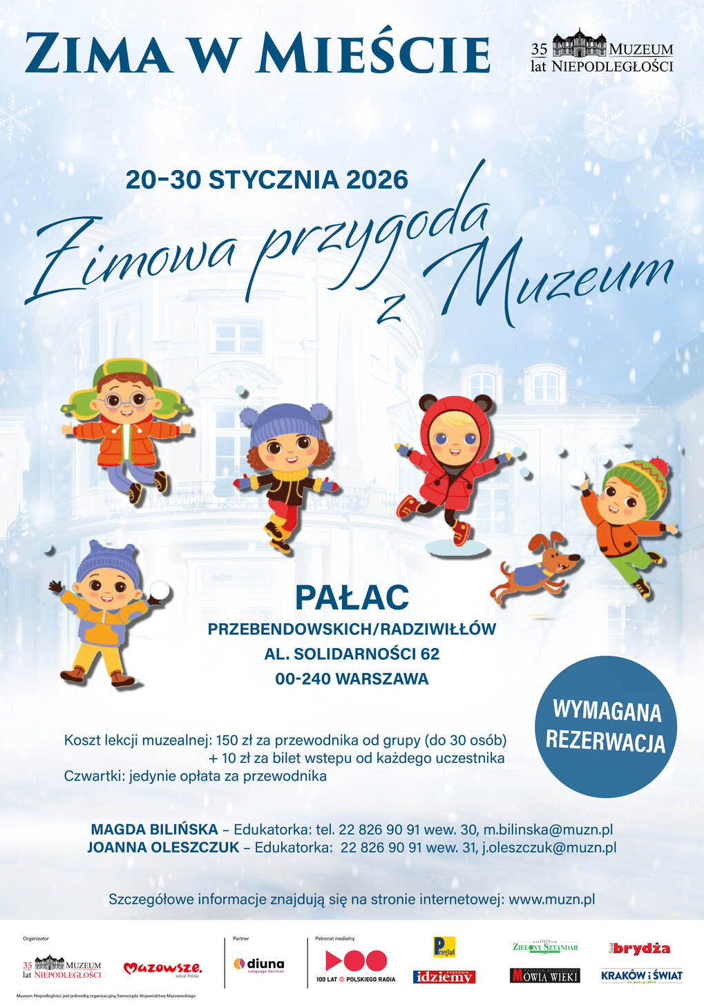 Od 20 do 30 stycznia Muzeum Niepodległości w Warszawie organizuje warsztaty dla dzieci i młodzieży, m.in. „Tajemnice rękopisów” przybliżą średniowieczne ryty oraz „Konie, psy, wiewiórki i inne zwierzęta Ojców Niepodległości”, które pokażą, jak często zwierzęta były powiernikami nawet najznamienitszych postaci w historii. Nie zabraknie opowieści o słynnej Kasztance, kurach pani Paderewskiej i innych nietypowych pupilach. Na warsztaty wymagana rezerwacja. Szczegółowe informacje można znaleźć na stronie internetowej muzeum www.muzn.pl.