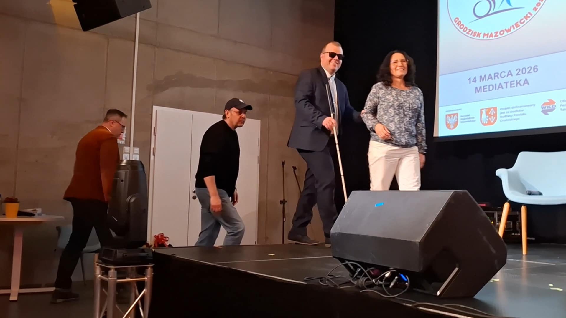 Rozmowę poprowadzili: Łukasz Nowacki z Ośrodka Kultury, prowadzący w kinie Centrum Kultury także Grodziski Klub Filmowy oraz Wojciech Zieliński, prowadzący w Mediatece Klub Filmowy dla osób niewidomych.