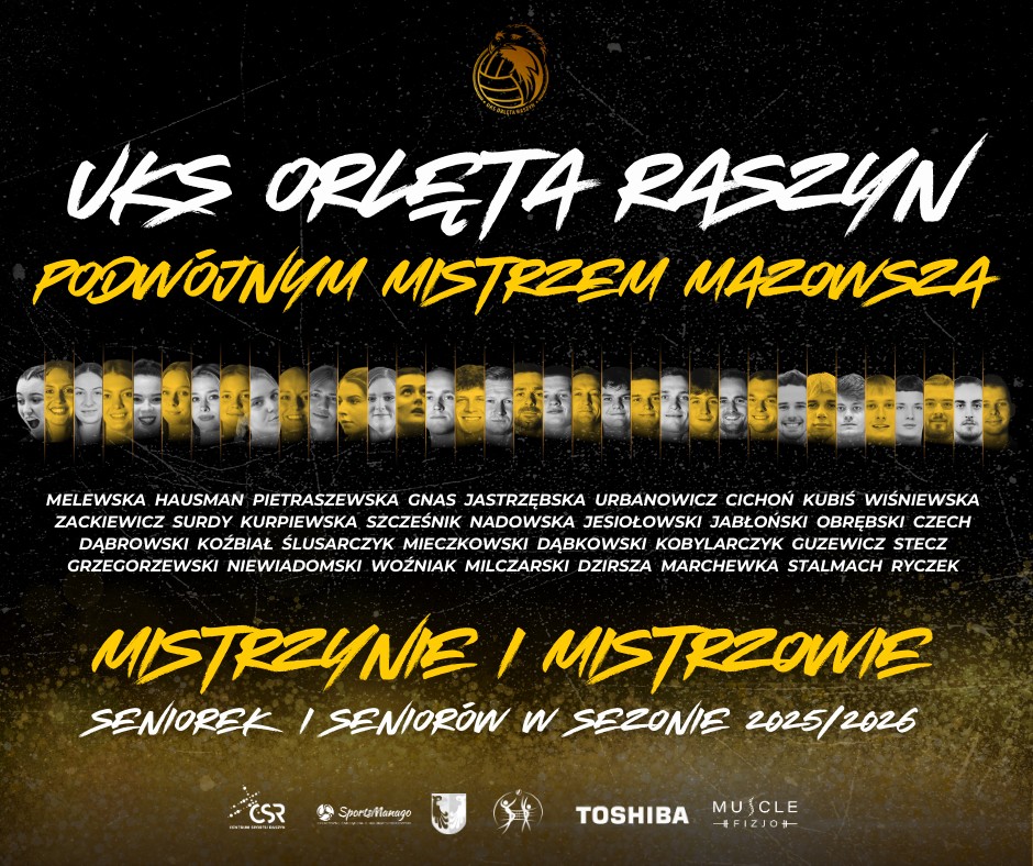 Raszyńska siatkówka zdominowała Mazowsze. W minioną sobotę, w ostatniej kolejce rozgrywek, Orlęta zwyciężyły w Legionowie, pokonując rezerwy pierwszoligowego LTS Legionovia 3:0 (25:21, 27:25, 25:22). Było to 15. zwycięstwo w sezonie, które przypieczętowało mistrzostwo Mazowsza.