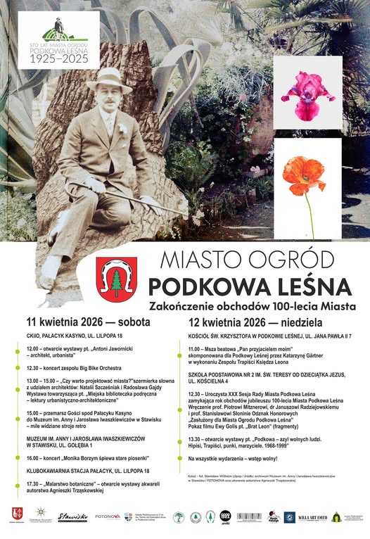 Obchody zakończenia jubileuszu 100-lecia miasta-ogrodu rozpoczną się w sobotę, 11 kwietnia 2026 roku. W samo południe nastąpi otwarcie wystawy poświęconej Antoniemu Jawornickiemu, polskiemu architektowi, któremu miasto zawdzięcza plan urbanistyczny, z podziałem Podkowy Leśnej na dziesięć dzielnic. W Pałacyku Kasyno, przy ul. Lilpopa 18, odbędzie się również koncert zespołu Big Bike Orchestra, a po nim szemierka słowna „Czy warto projektować miasta” z udziałem architektów: Natalii Szcześniak i Radosława Gajdy.