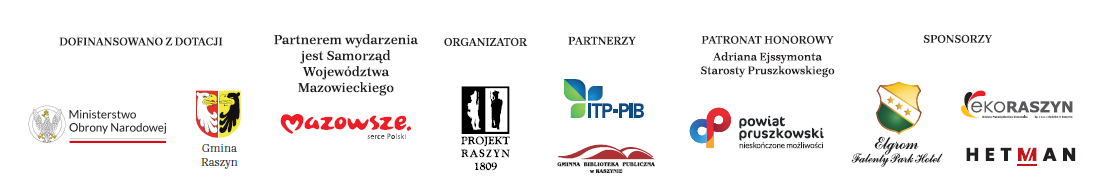 Organizator (Stowarzyszenie Projekt Raszyn) pragnie podziękować za uzyskane wsparcie z dotacji: Ministerstwa Obrony Narodowej oraz Gminy Raszyn. Projekt zrealizowano w Partnerstwie z Samorządem Województwa Mazowieckiego oraz Gminą Michałowice a także Instytutem Technologiczno-Przyrodniczym w Falentach i Gminną Biblioteką Publiczną w Raszynie a także, za Honorowy Patronat Starosty Pruszkowskiego.