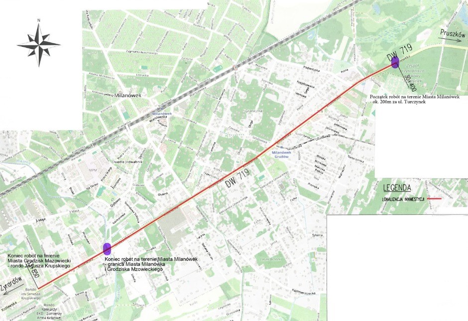 Zakres robót obejmuje odcinek od ok. 200 metrów za ulicą Turczynek (w stronę Pruszkowa) aż po granicę z Grodziskiem Mazowieckim. To dość długi fragment, więc roboty będą prowadzone etapami, by nie paraliżować całego ruchu w mieście.