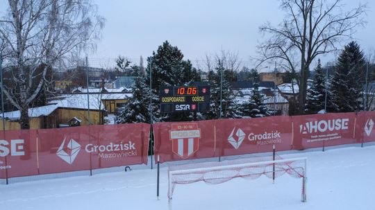Obecny stadion Pogoni Grodzisk zimą. Tak dziś wyglądają maszty oświetleniowe [GALERIA ZDJĘĆ]